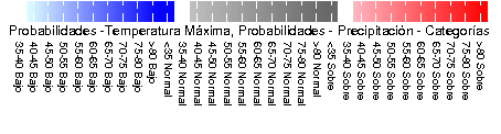 max [ ( OLE2 CPT ESCENARIO2 PROBABILIDADESTMAX ) , max ( OLE2 CPT ESCENARIO2 PRECIPITACION ) ]: Probabilidades -Temperatura Máxima, Probabilidades - Precipitación - Categorías data