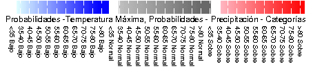 max [ ( OLE2 CPT ESCENARIO2 PROBABILIDADESTMAX ) , max min ( OLE2 CPT ESCENARIO2 PRECIPITACION ) ]: Probabilidades -Temperatura Máxima, Probabilidades - Precipitación - Categorías data